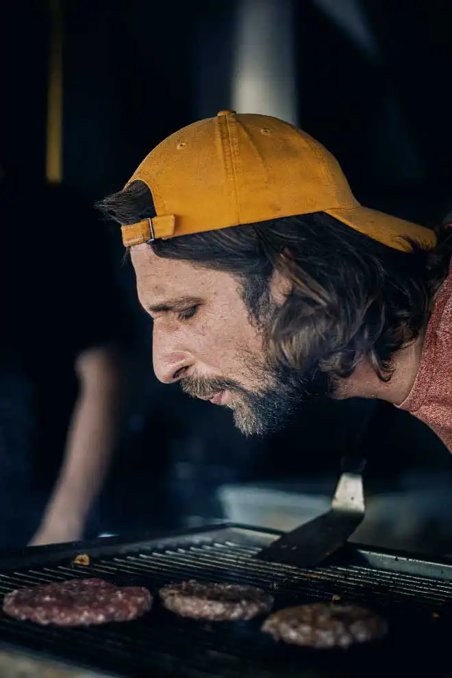 Martin was initially Ricardo’s best customer. “I was right in the middle of my finance degree, but then I thought grilling burgers was the better idea,” Martin says with a grin. He hasn’t regretted it for a moment. For two years now, he’s been a permanent part of the team, along with employee Maike Albertowski. The three form the heart of a business that has consciously decided against the principle of “growth at any cost.” “We’re not a big empire,” says Ricardo. “Over the years, we’ve learned. You get a bit tired, but also better.”