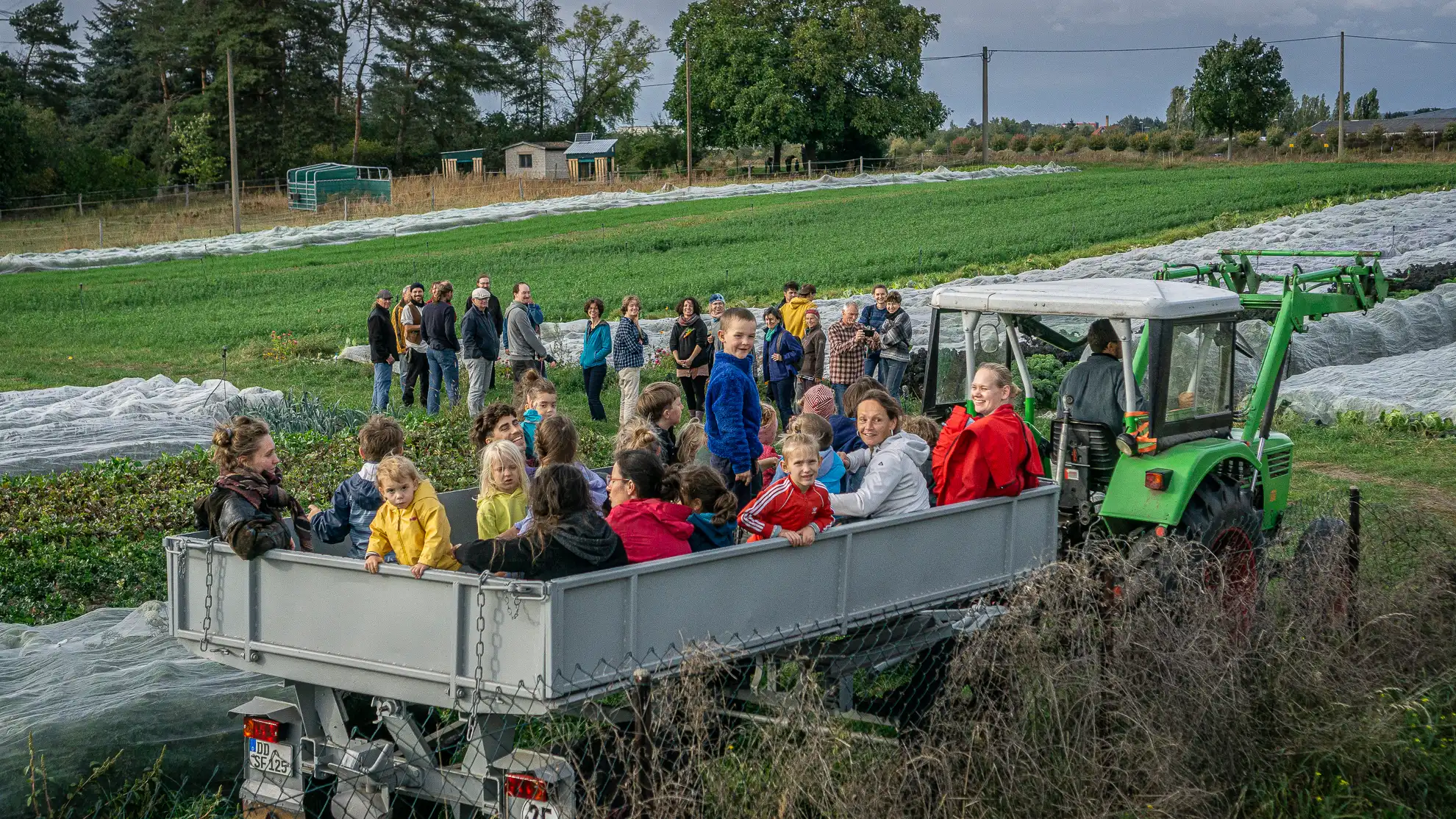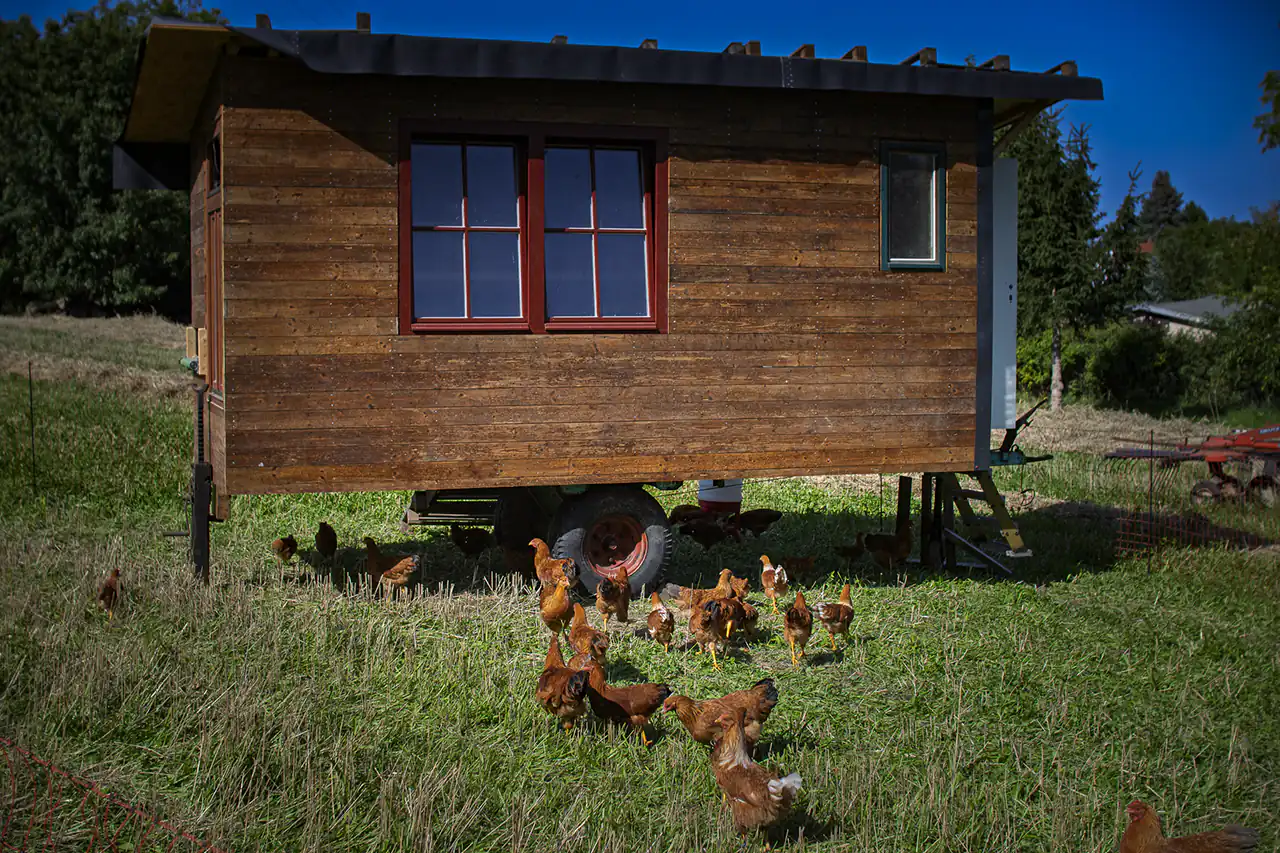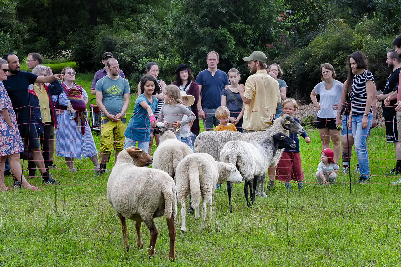 Zur Landwirtschaft gehört hier immer auch Tierhaltung: Auf den Wiesen zwischen den Bäumen weiden Schafe, die als Landschaftspfleger und zugleich als Bildungsanlass dienen. Besonders sind die Dresdner Hühner – eine in den 1950er‑Jahren in der Region gezüchtete Zweinutzungsrasse, die Eier legt und zugleich Fleisch ansetzt. Im Agroforstsystem unter Obstbäumen finden sie Schatten, Schutz und Futter, während ihre Bewegung und ihr Mist den Boden beleben.
