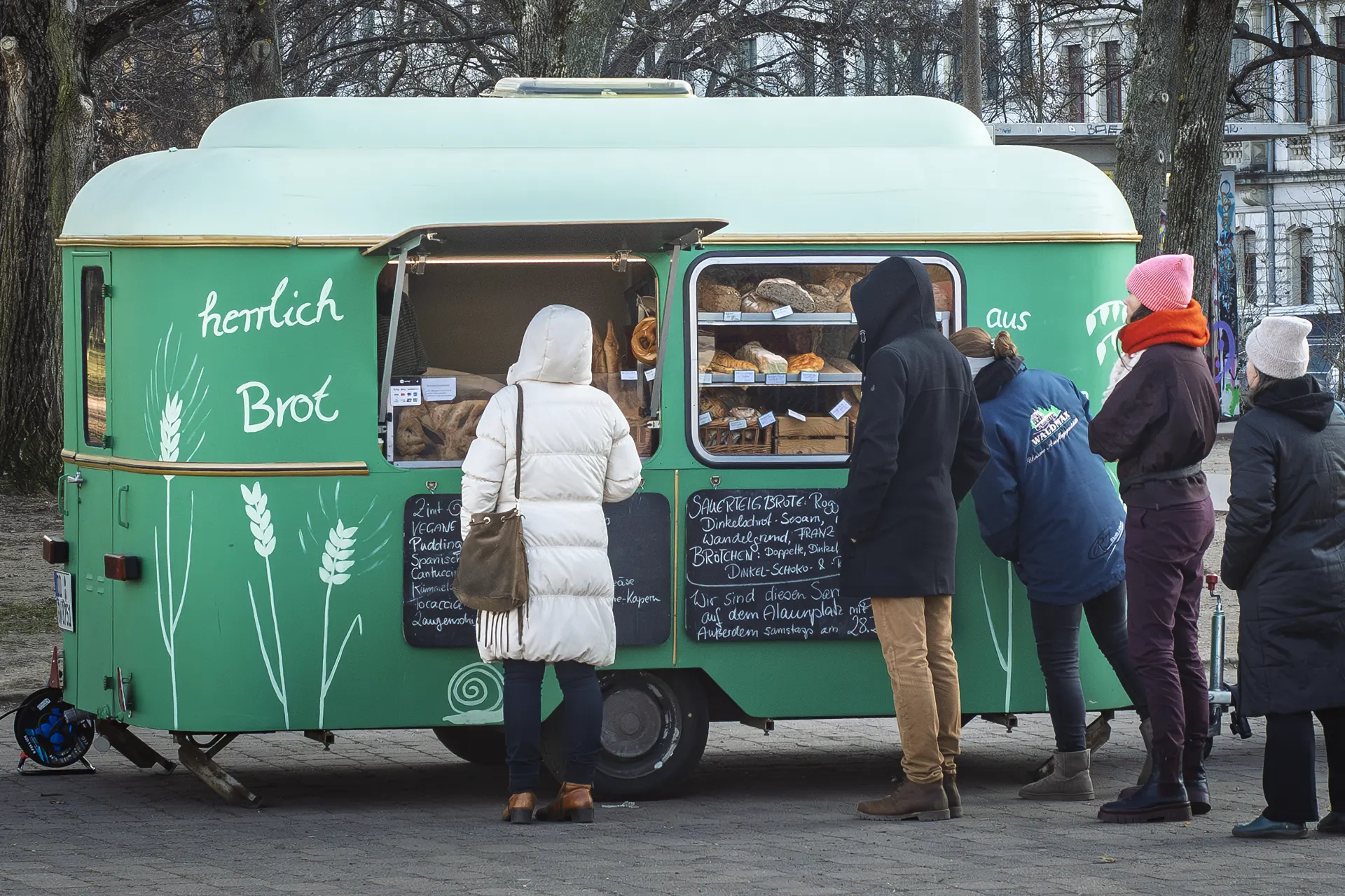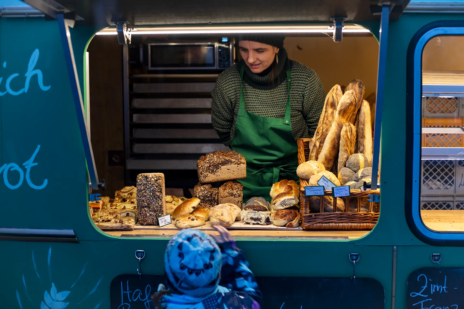 The concept is simple: Tag2wo sells exclusively day‑old baked goods, bought from small, regional artisan bakeries – no industrial products, much of it produced to ecological standards. Rolls cost a maximum of 50 cents, bread between one and two euros. There is also sailed coffee from Leipzig, which crossed the Atlantic by sailing boat and is freshly dispensed from the espresso machine for two euros. “We offer what feels like the most expensive coffee in Dresden,” says Pepe with a smile, “but we still have the margin to make customers with low incomes happy – and survive as a business.”