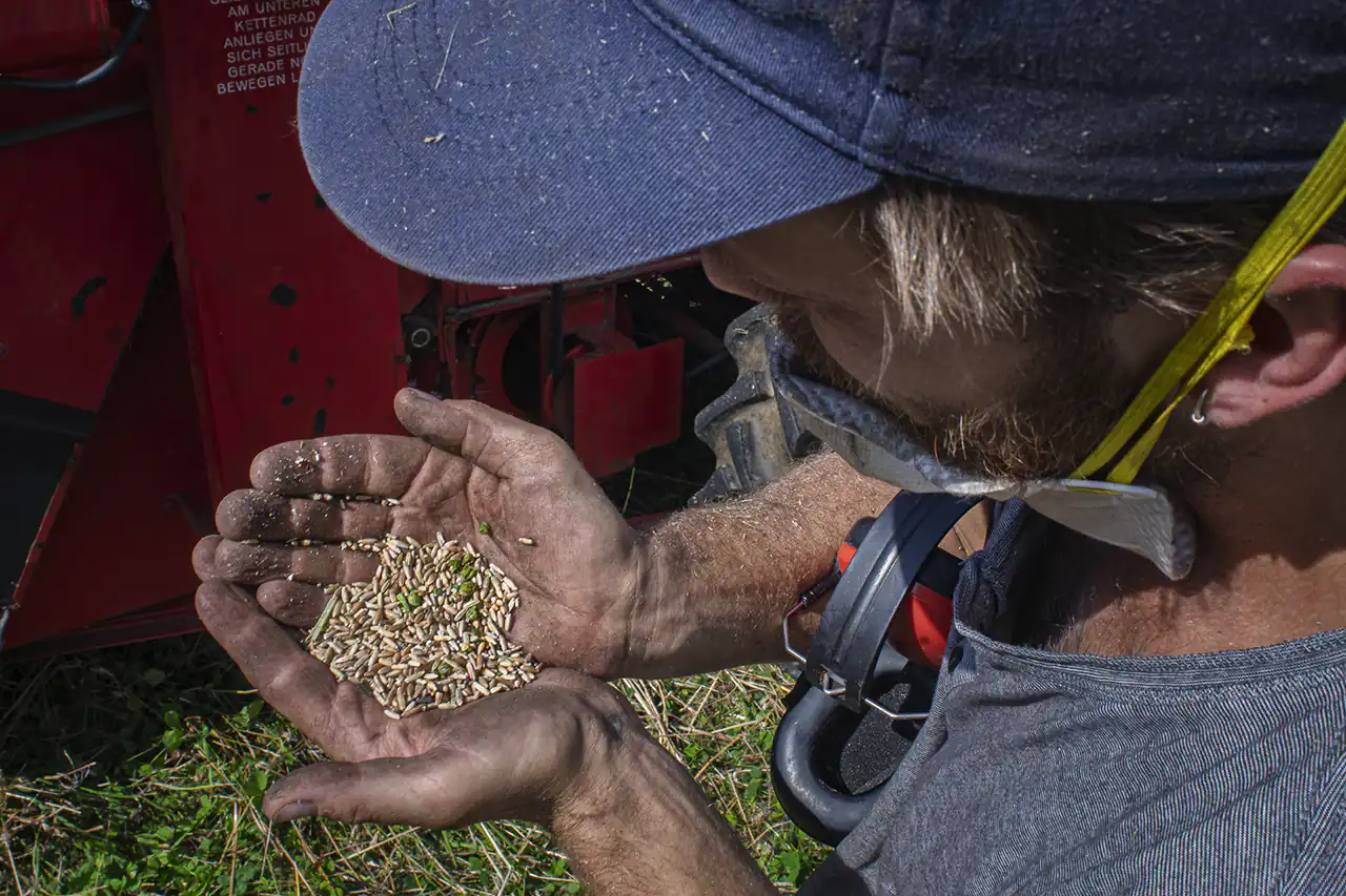 ​Ein Beispiel, an dem sich seine Haltung zeigt, sind Disteln und Quecken – Leitunkräuter, die sich nicht mit einem Spritzdurchgang erledigen lassen. Einen queckenfreien Acker erreicht man nur, wenn über mehrere Jahre hinweg fast alles stimmt: Fruchtfolge, Bodenbearbeitung, Zeitpunkt der Arbeiten. „Alles richtig machen geht nicht“, sagt er, und das ist kein resignierter Satz, sondern die Beschreibung einer Arbeit, die intellektuell bleibt: Die Pflanze macht nicht, was der Mensch will, sondern was sie selbst will. Landwirtschaft wird zur dauernden Auseinandersetzung mit einem lebendigen System, nicht zum Abarbeiten von Checklisten.