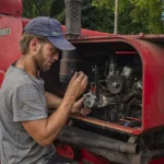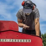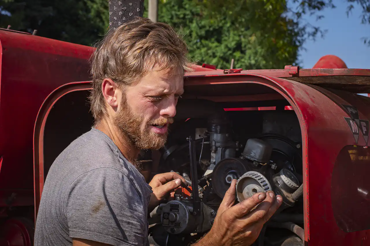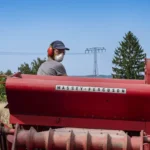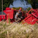 An einem heißen Sommertag durfte ich erleben, wie Ludwig mit dieser Maschine das Getreide dreschte. Etwa die Hälfte des Feldes war eingeholt, als die Maschine plötzlich in der prallen Sonne stehen blieb – ein technisches Problem mitten im Getreide. Auf großen Feldern mit modernen Maschinen hätte dies bedeutet: einen Spezialisten anrufen, die Maschine abschleppen oder eine Ersatzmaschine anfordern – aufwendig und teuer. Ludwig hingegen lief in wenigen Minuten hinunter in seine Werkstatt und kam mit dem passenden Werkzeug zurück. Er musste nur warten, bis die Maschine sich ein wenig abgekühlt hatte, bevor er die Reparatur in der Hitze vornehmen konnte. Mit ruhiger Hand und großer Erfahrung brachte er die alte Ferguson wieder zum Laufen.