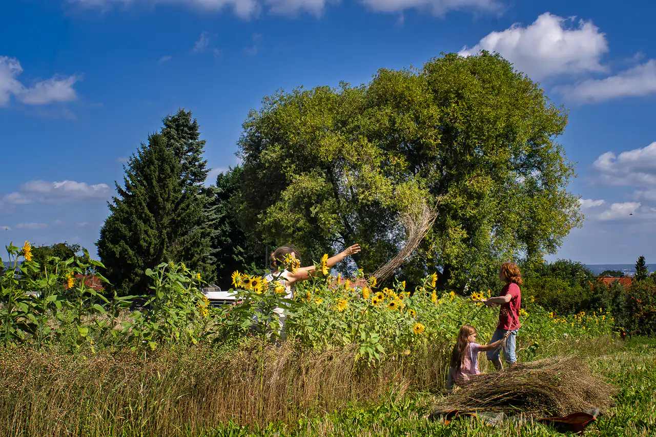 Ludwig inherited the old Ferguson combine harvester from his grandparents – a machine he rode on as a child, sitting on his grandfather’s lap. He brought it from the Ore Mountains to Dresden. The Ferguson fits perfectly into this picture: a machine whose size and technology are suited to a small, diverse farming operation, not to thousands of hectares of monoculture. It is a tool that connects generations and preserves knowledge.