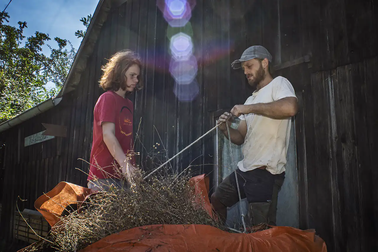 Lena brings her own experience from rural Baden-Württemberg, where her grandfather was one of the last farmers in the village. Together, they have not created a romantic side project, but their centre of life: a house, a child, a farm – and the ambition to combine agriculture, education, art and culture in one place.​