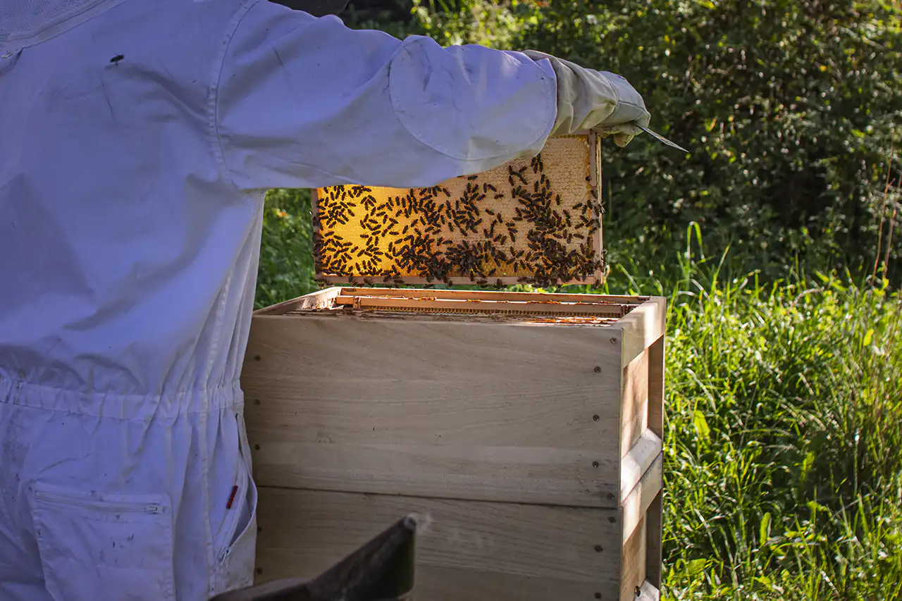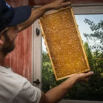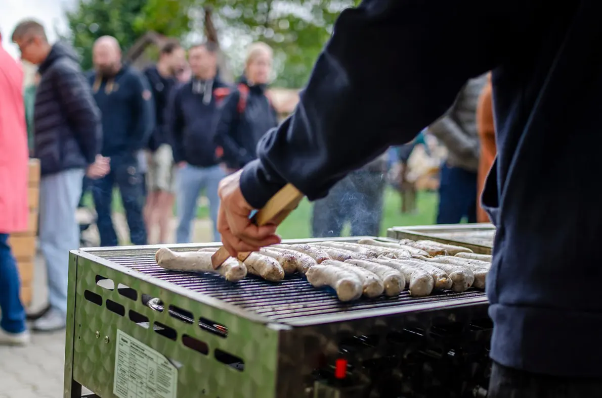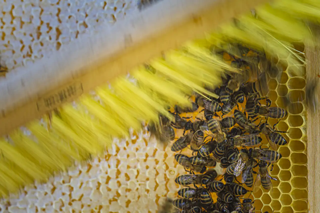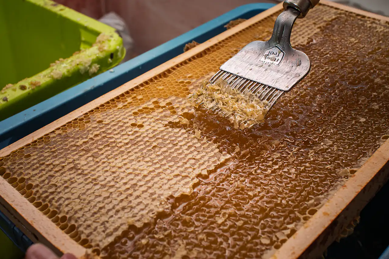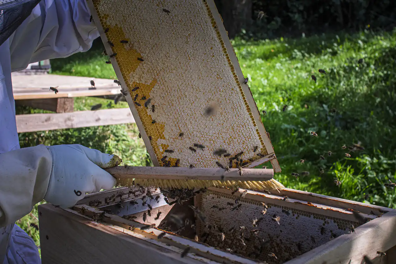 Zwischen Obstbäumen und Beeten stehen am Wandelgrund auch mehrere Bienenstöcke, die an einem heißen Sommertag zur Bühne für eine kleine Honigernte wurden, die ich mit meiner Tochter miterleben durfte. Während ein Imker die Waben vorsichtig aus dem Bienenstock hob und in das kleine Schleuderhäuschen trug, stand meine Tochter ein paar Meter entfernt zwischen den Brombeersträuchern und naschte Beeren – sicher, aber mitten im Geschehen. Drinnen erklärte Ludwig ihr geduldig, wie die Honigschleuder funktioniert, warum die entdeckelten Waben erst mit einer speziellen Gabel geöffnet werden und wieso es sich beim Drehen der Trommel anhört, als würde draußen ein Sommerregen einsetzen. Als der erste goldene Honig an der Wand der Trommel hinunterlief, durften wir probieren: Er schmeckte dichter, süßer, intensiver als jeder Honig aus dem Glas im Supermarkt und hätte an diesem heißen Tag perfekt auf eine Kugel Eis gepasst. Gleichzeitig wurde klar: Die Bienen sind hier nicht nur Honiglieferanten, sondern wichtige Mitarbeiterinnen für die Bestäubung der Bäume und Sträucher, die den Wandelgrund so fruchtbar machen.