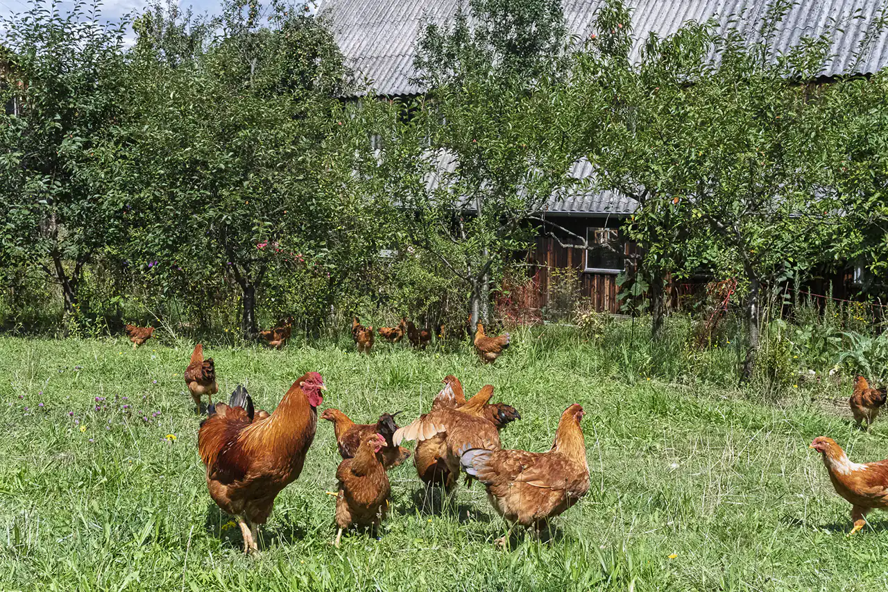 Here, livestock is always part of the farming system: sheep graze between the trees, acting both as landscape managers and as an educational attraction. A special feature are the “Dresdner Hühner” – a dual‑purpose chicken breed developed in the region in the 1950s that lays eggs and also puts on enough meat for the pot. In an agroforestry setup under fruit trees they find shade, shelter and feed, while their movement and manure help to enliven the soil.​
