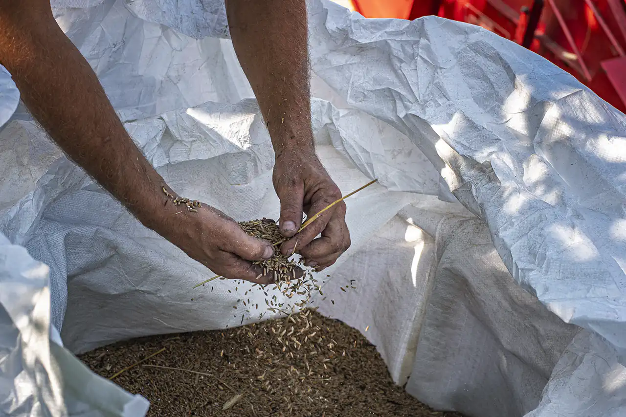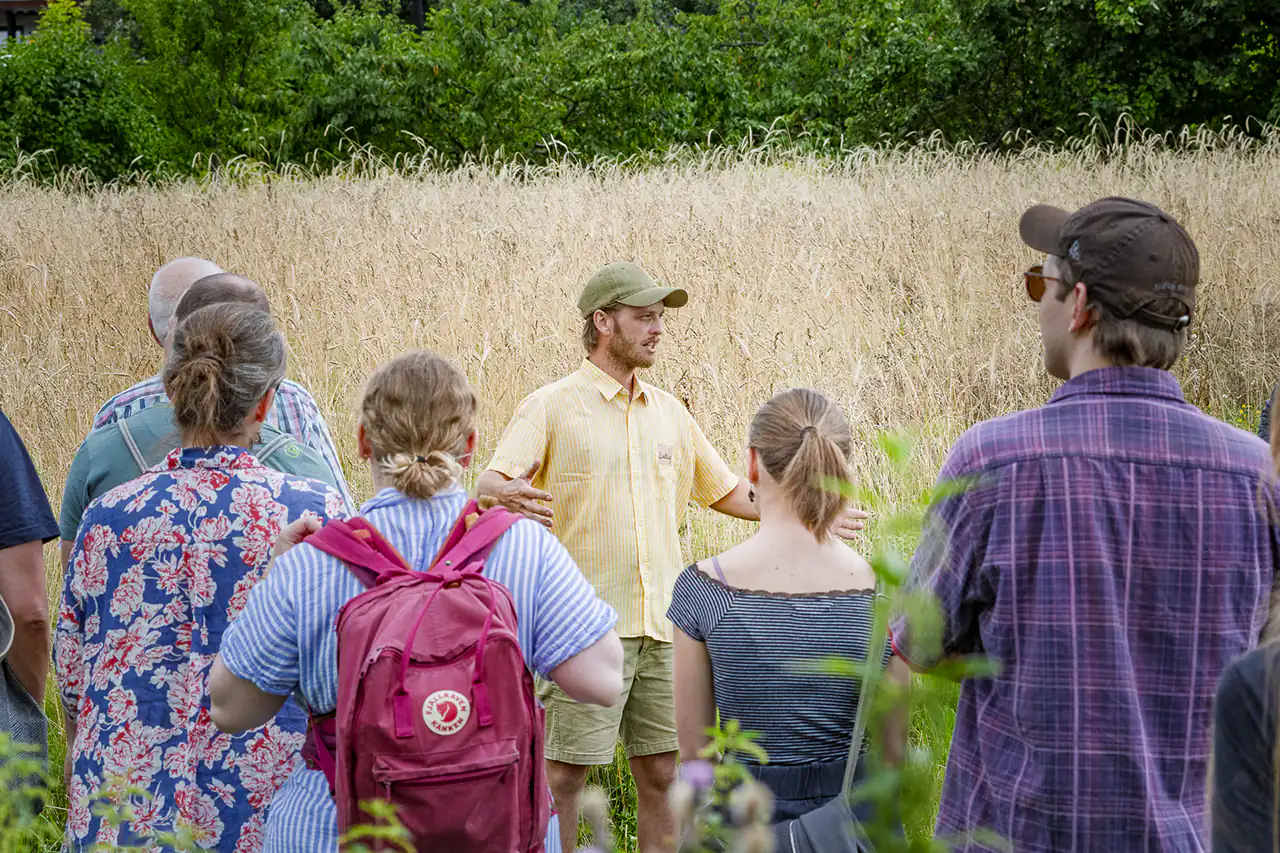 What immediately stands out is the perennial rye, its dense stand interwoven with diverse accompanying flora. Ludwig has initiated a research project with HTW Dresden exploring the potential of perennial grains for soil fertility, yield, and labor efficiency.