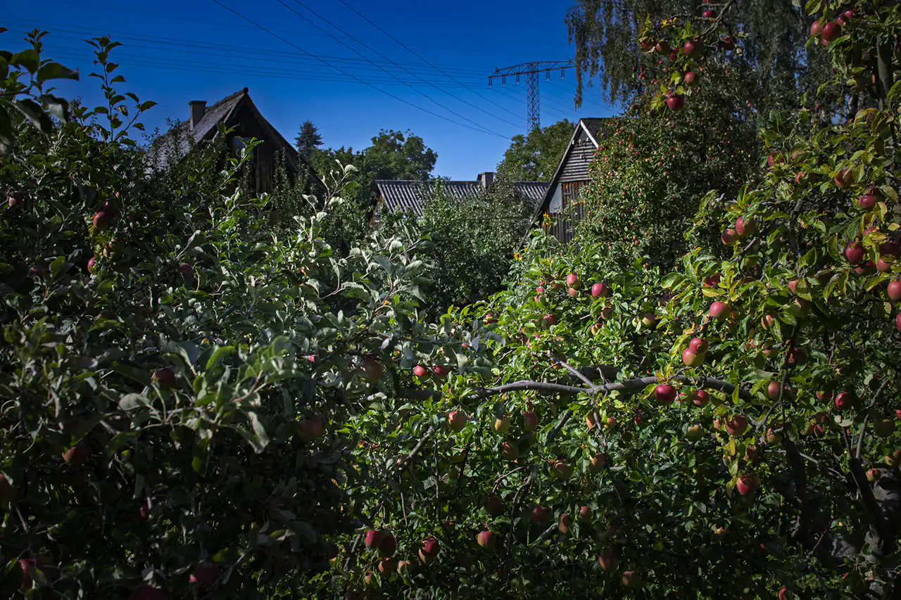 Today, Wandelgrund is an organic mixed farm that demonstrates what is possible on limited land. The fields grow rye, wheat, einkorn, peas, and various vegetables such as potatoes, red and golden beets, carrots, onions, beans, zucchini, squash, and corn; there are also fruit trees bearing apples, pears, plums, and nectarines, as well as numerous berry bushes.